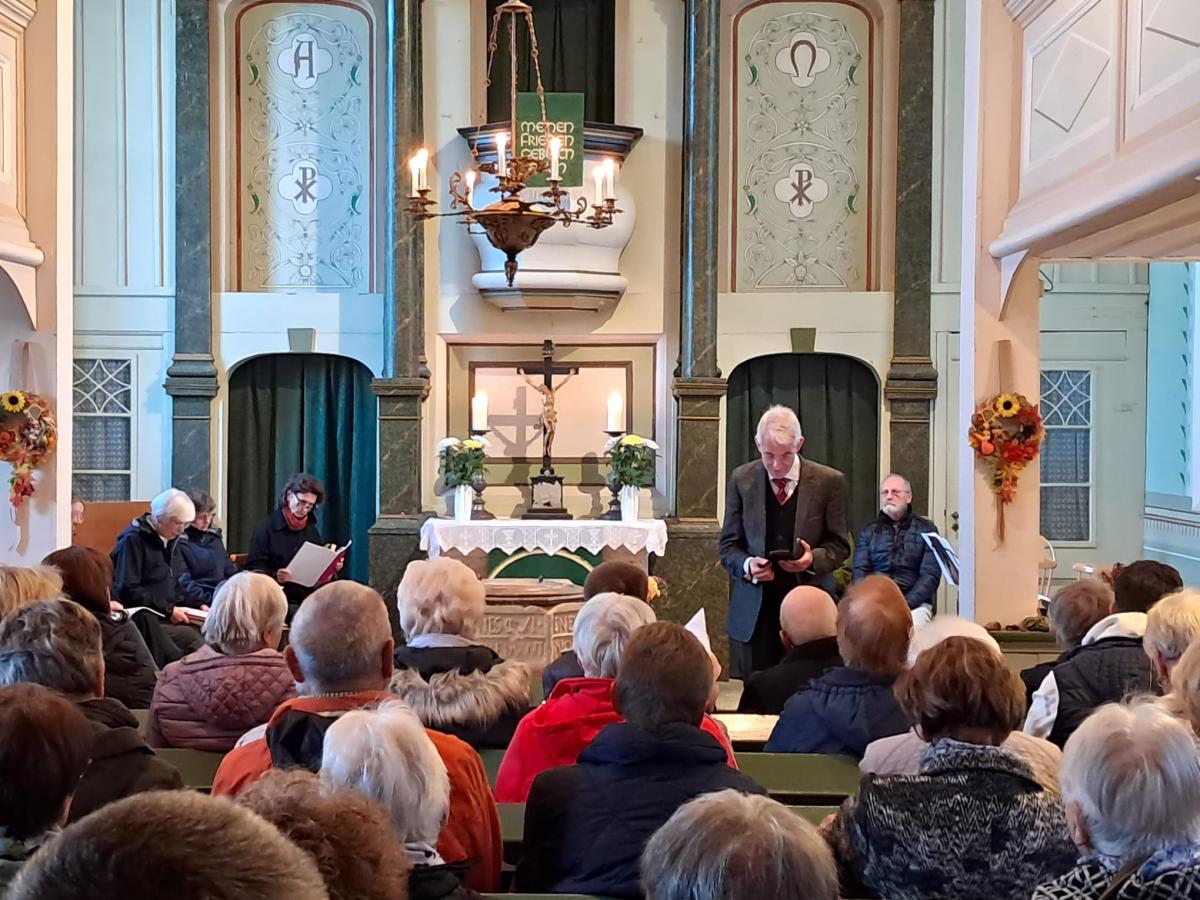 So war es am späten Samstagnachmittag nicht verwunderlich, dass aus fast allen Orten im näheren und etwas weiteren Umkreis am späten Samstagnachmittag des 18.10. viele Menschen nach Braunsroda zum Gottesdienst strömten, um Tilo Radestock in einem Gottesdienst in der liebevoll geschmückten Kirche für sein jahrzehntelanges Wirken zu ehren.