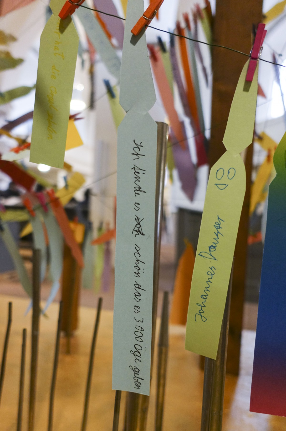 Die erste Zeitzer Orgelwoche begann mit täglichen Orgelführungen für Grundschüler*innen. Mehr als 300 Kindern erklärte Kirchenmusikerin Johanna Schulze den Aufbau, die Funktionsweise und das Spiel einer Orgel. Ihre Eindrücke hielt die kleinen Gäste am Schluss auf Zetteln in Form von Orgelpfeifen fest. Aus all den kleinen Papierpfeifen entstand im Laufe der Woche ein buntes Kunstwerk, an dem ablesbar wurde, wie beeindruckt die kleinen Besucher von dem großen Instrument waren.