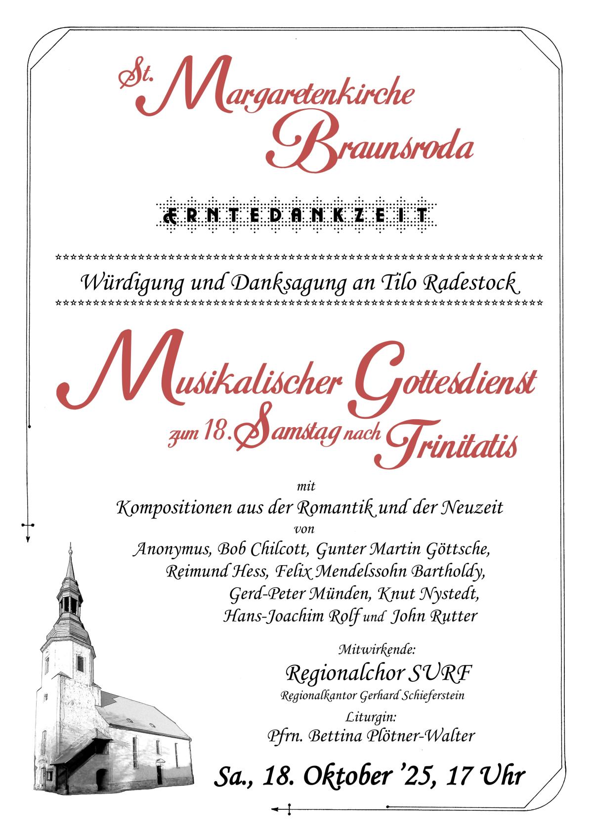Am Samstag, den 18. Oktober 2025, gibt es um 17 Uhr einen in der Kirche St. Margareten in Braunsroda.